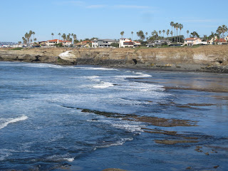 The City of San Diego has been battling the elements to protect the cliffs from erosion by placing rocks along the shore line. It was low tide today but during a really high tide, waves crash into the cliffs with such force that in some areas the path is gone.